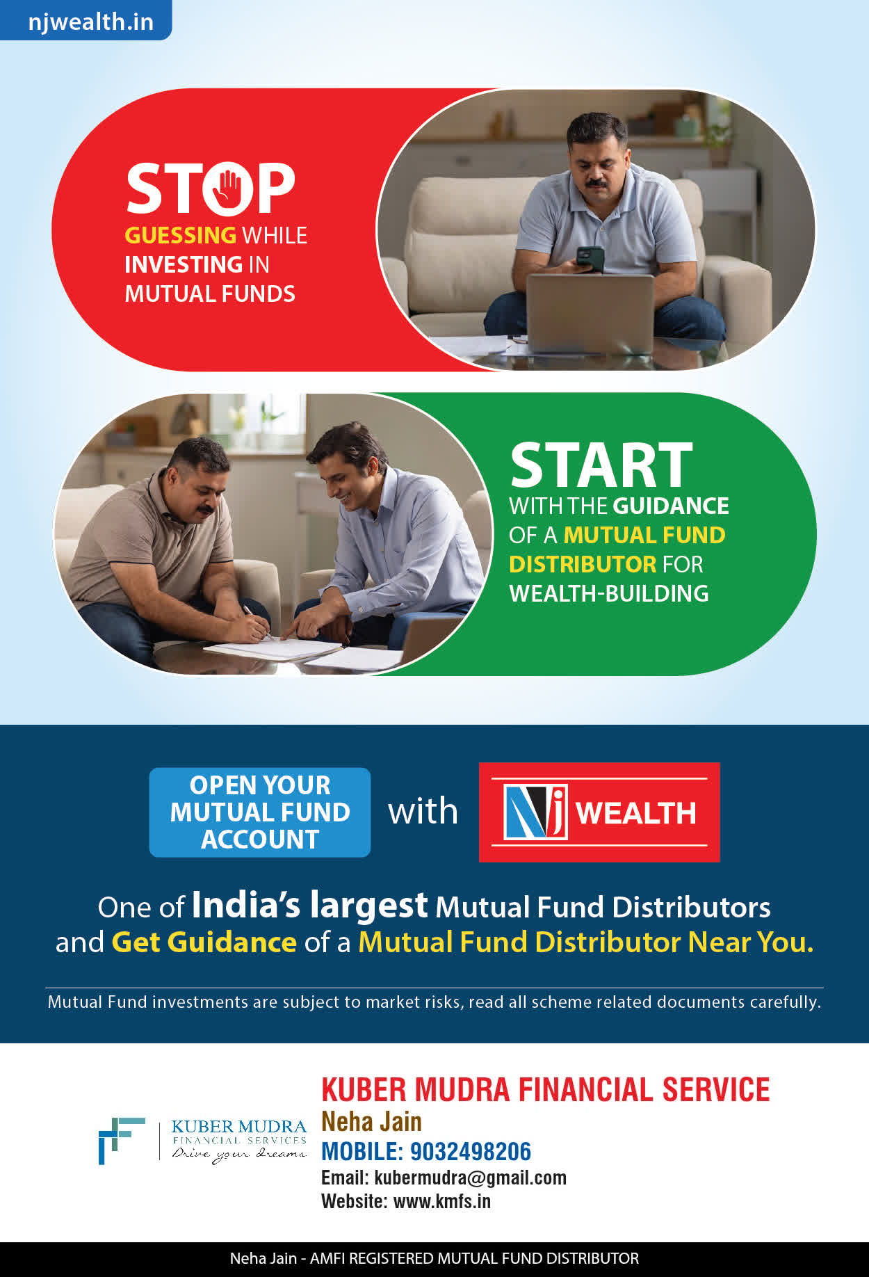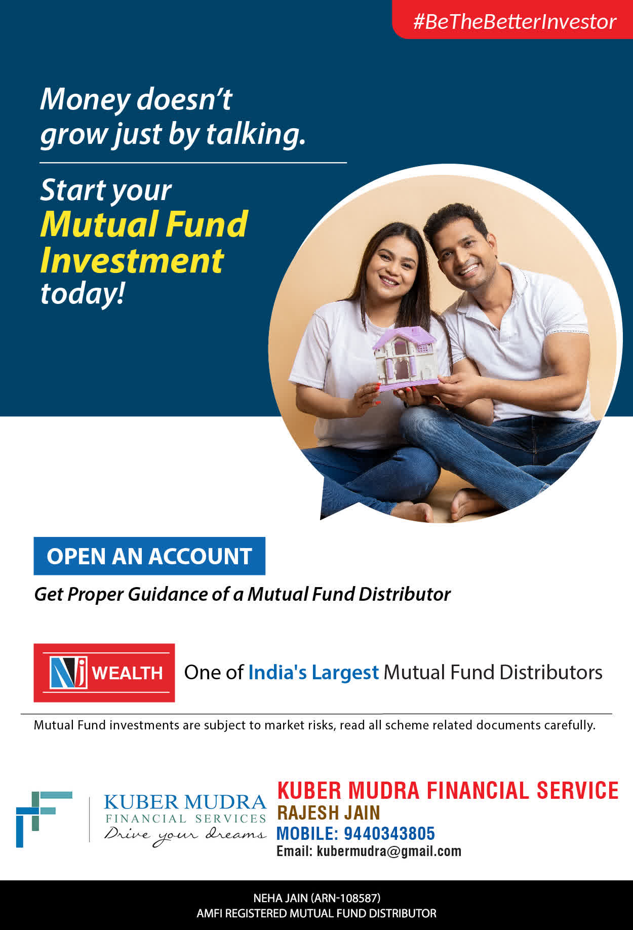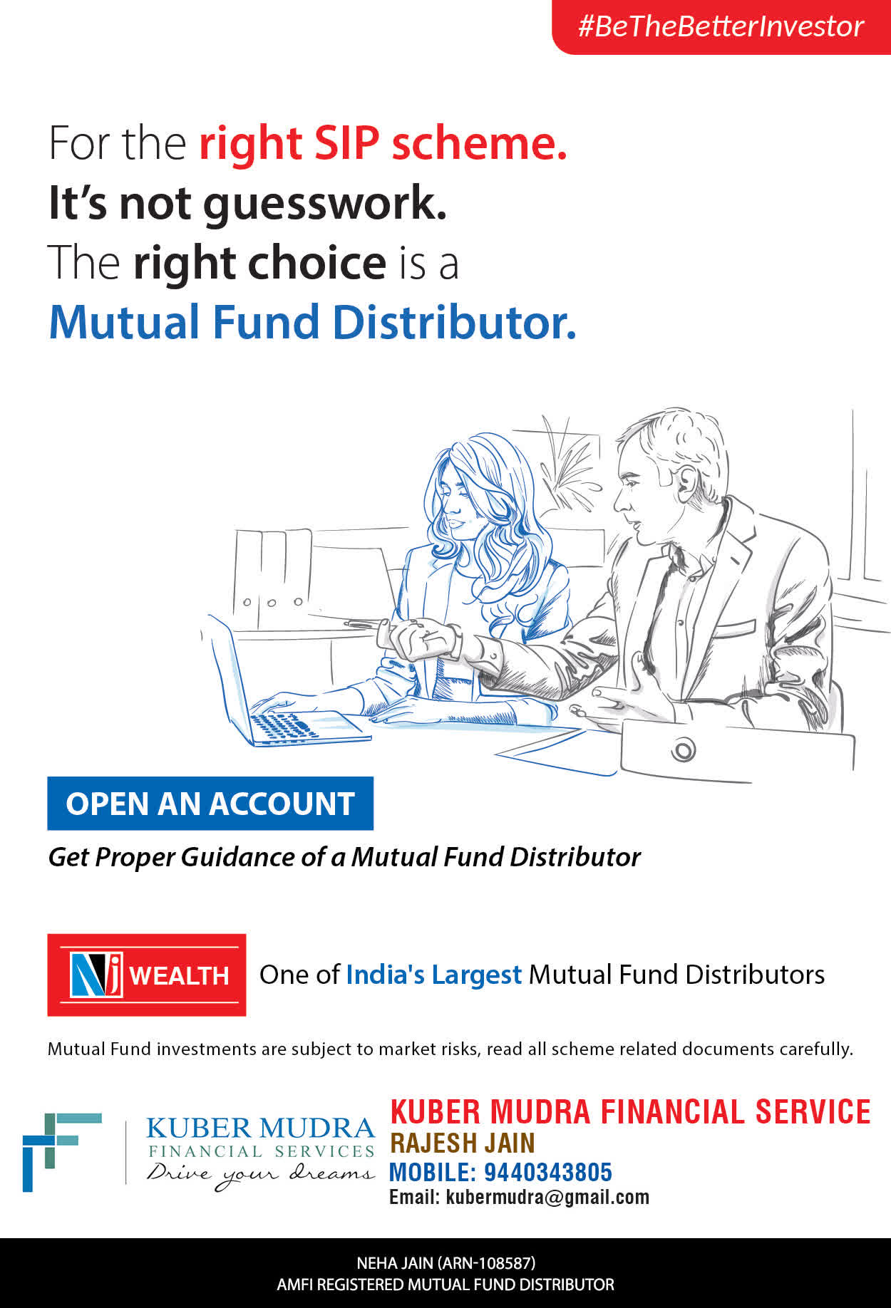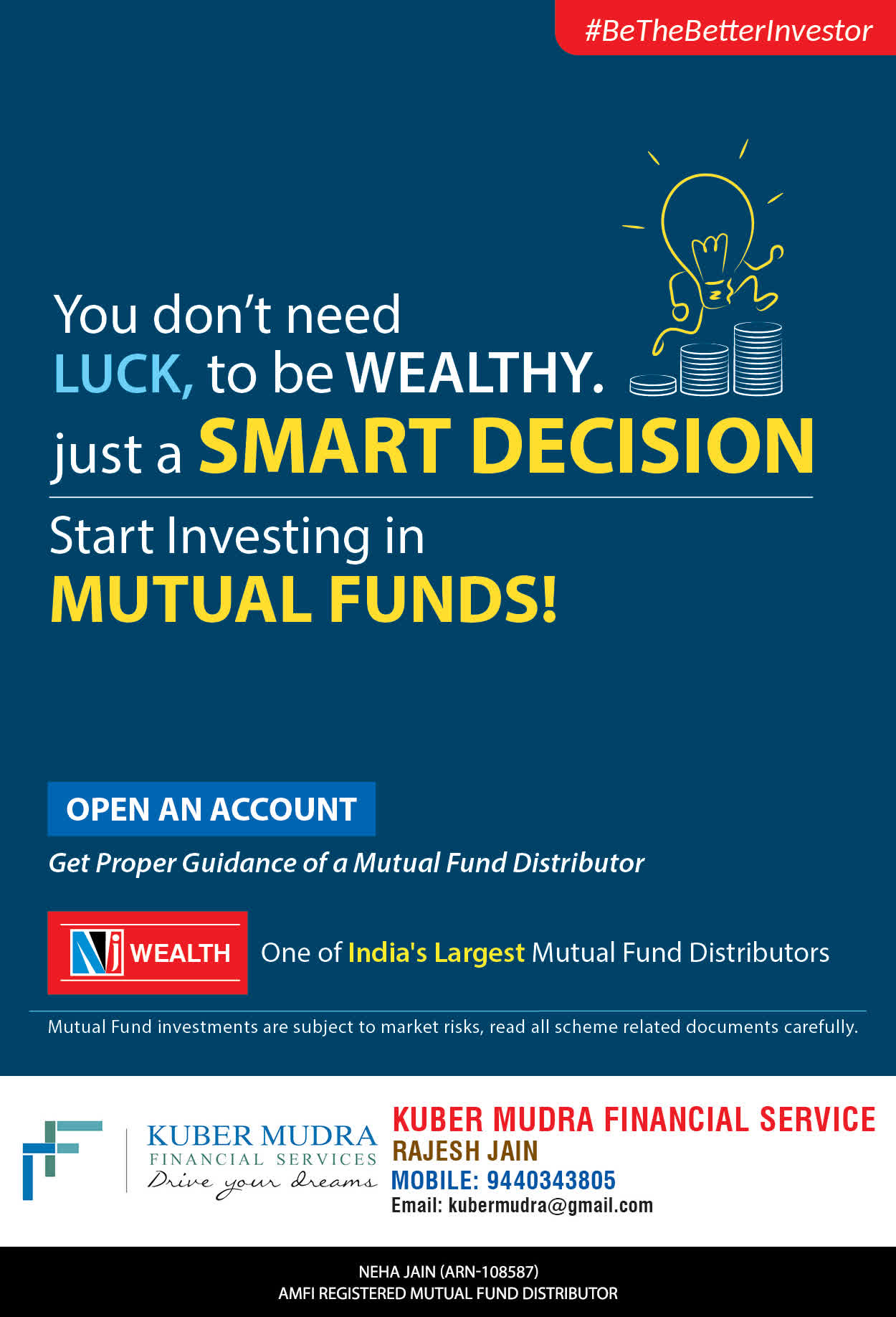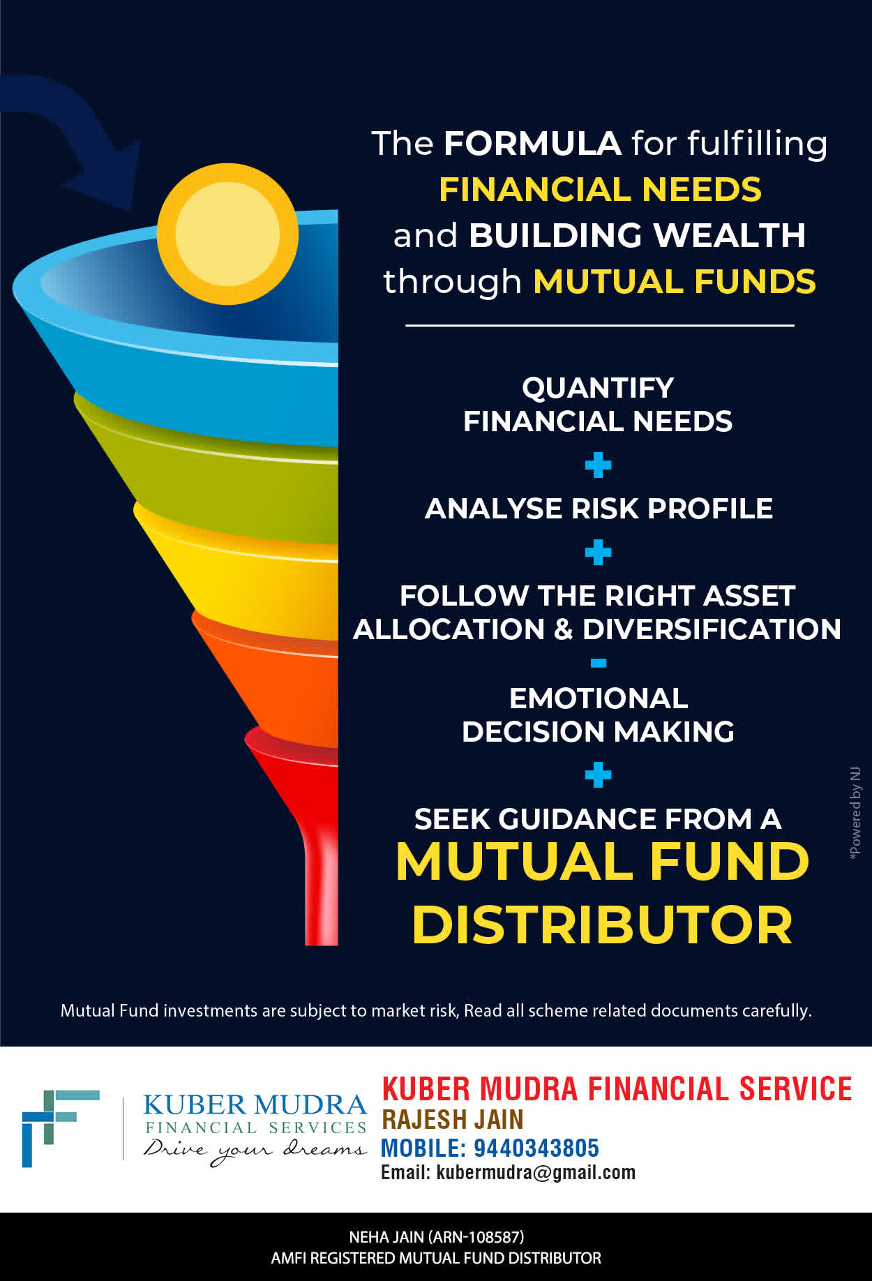 The Name KUBER MUDRA FINANCIAL SERVICES itself describes the very nature & goal we want to achieve for our Clients. Yes, our mission is to provide our clients with the best solutions in wealth creation and wealth management. We believe in first making our clients Financially literate. Earning after learning is the ultimate result. Our approach is to enable our client's to understand their investments, have knowledge of investment products and that they make proper progress towards achieving their financial goals in life.