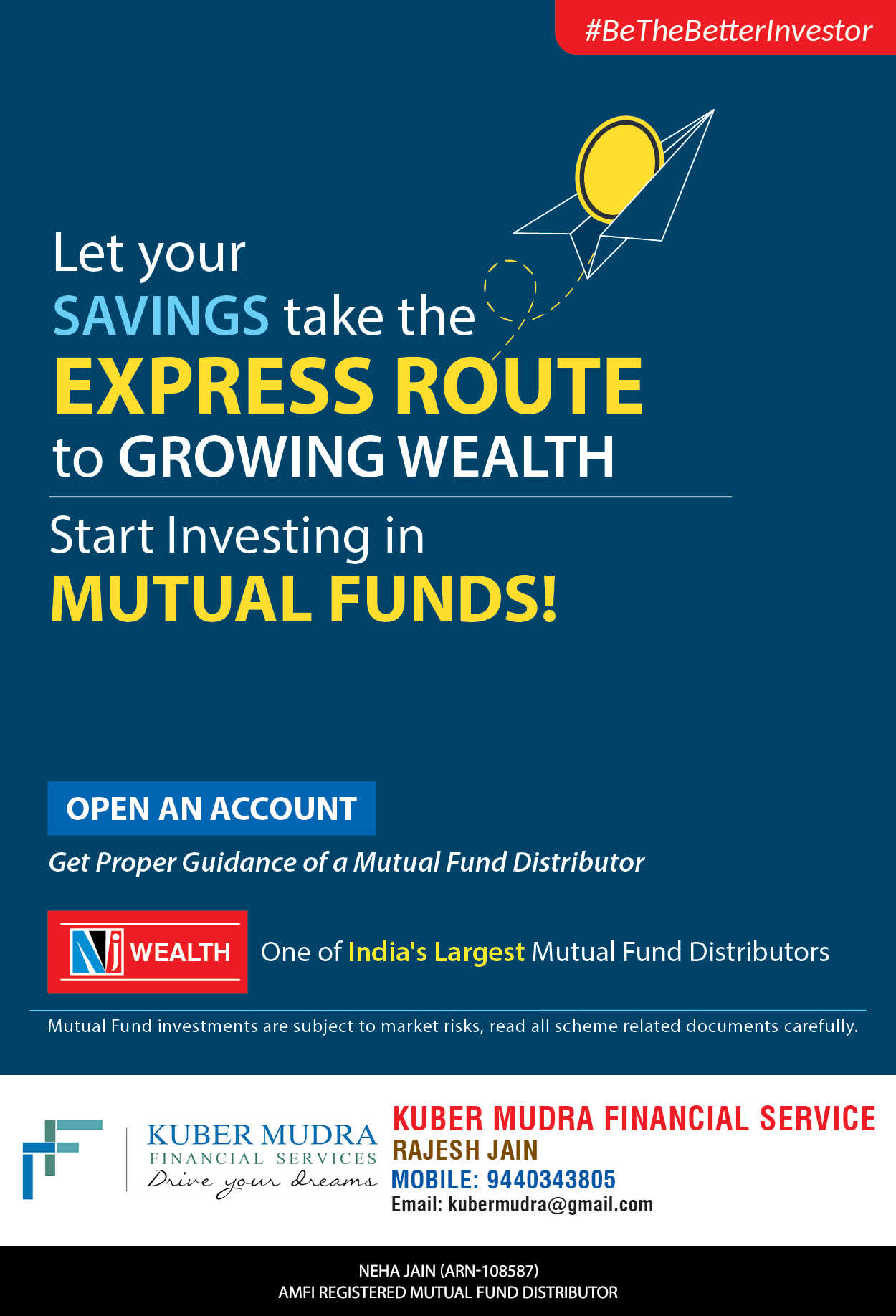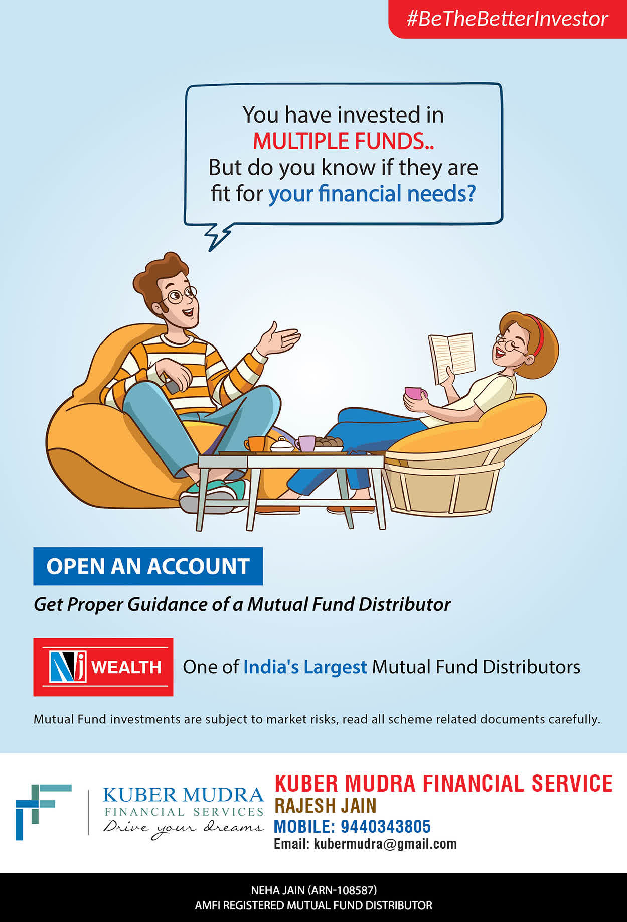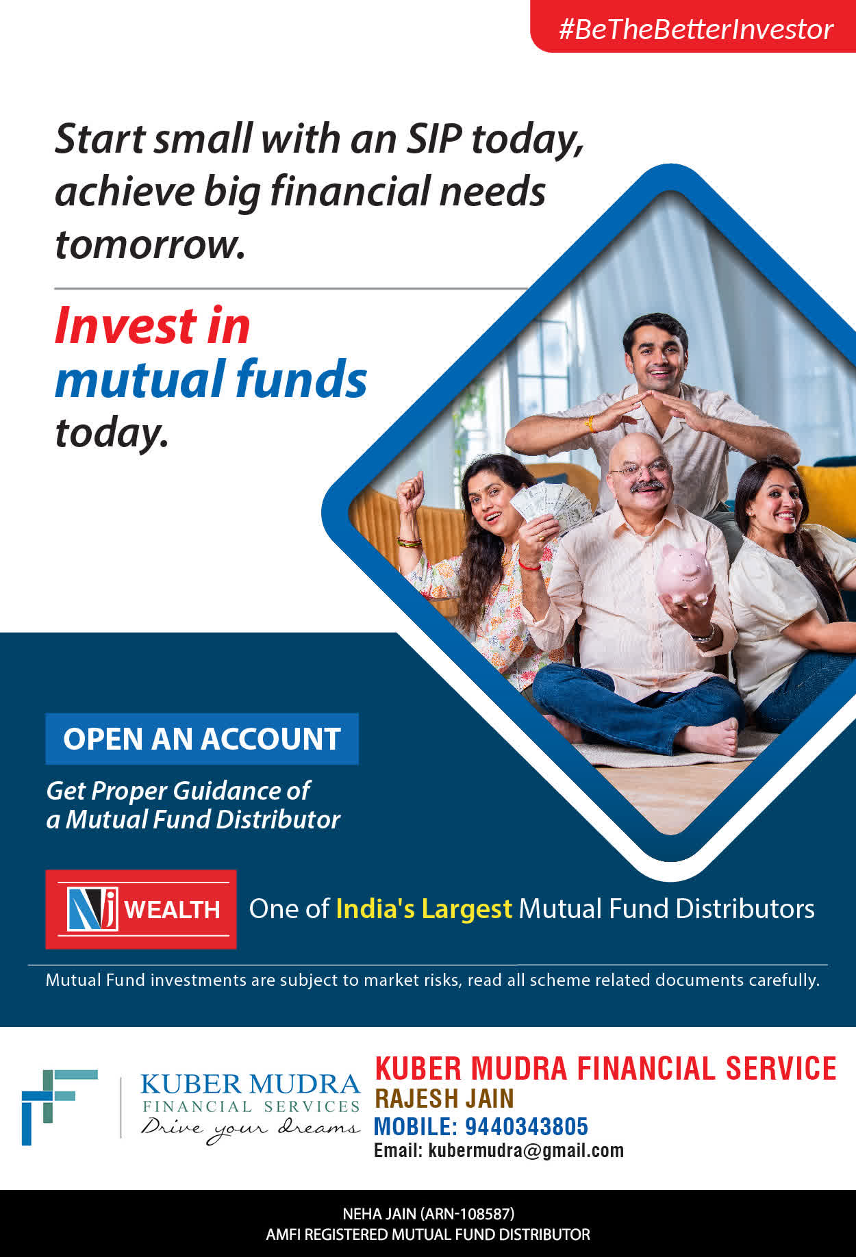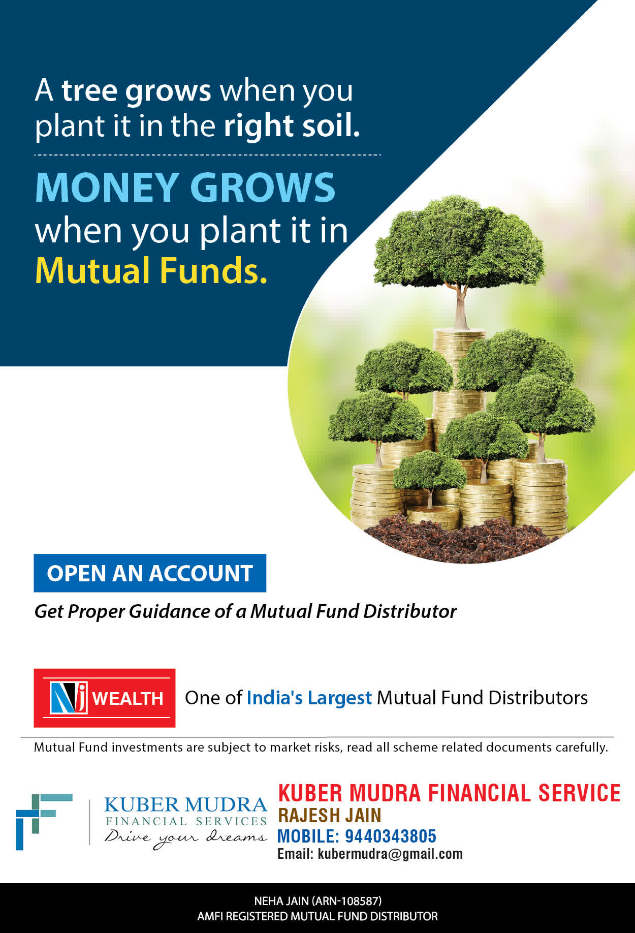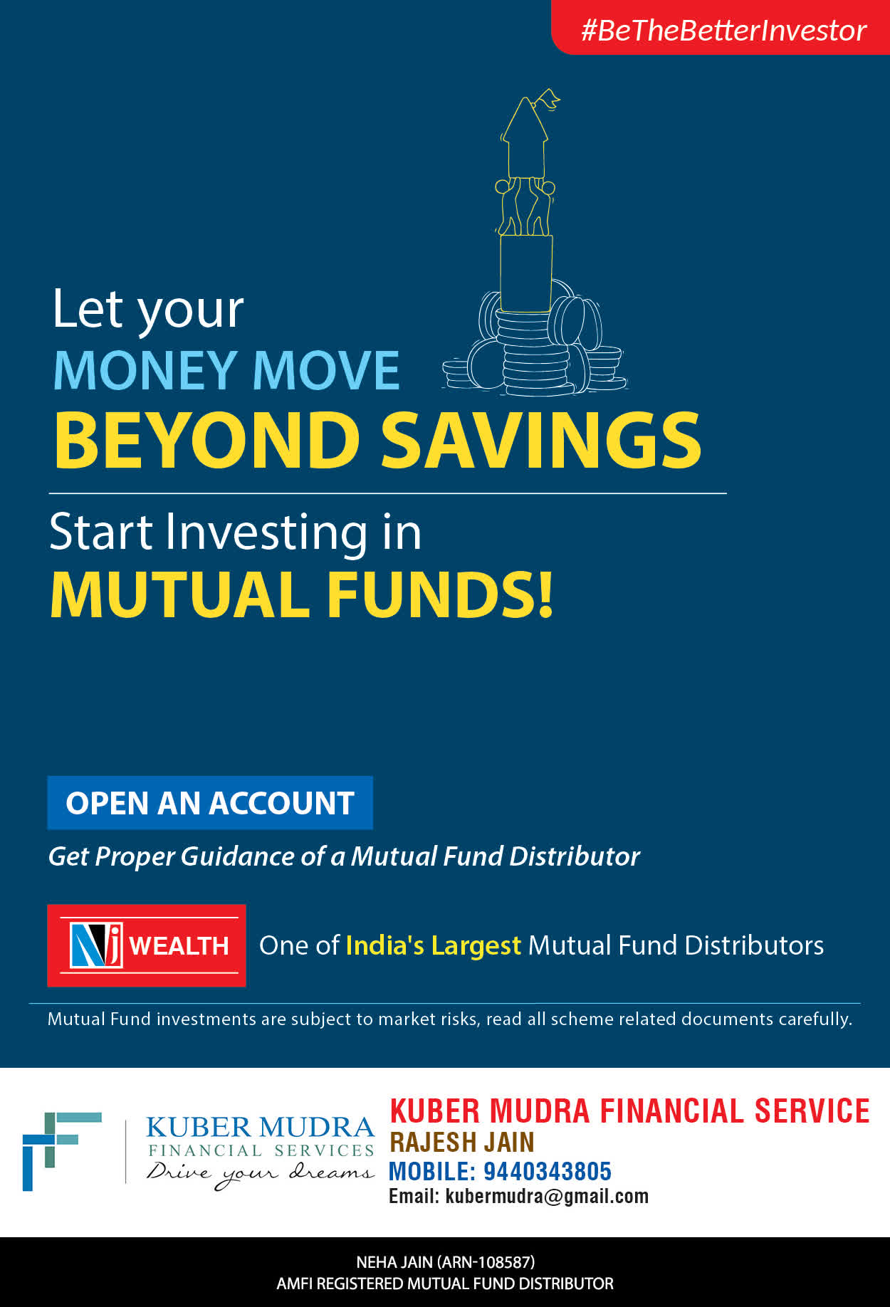 The Name KUBER MUDRA FINANCIAL SERVICES itself describes the very nature & goal we want to achieve for our Clients. Yes, our mission is to provide our clients with the best solutions in wealth creation and wealth management. We believe in first making our clients Financially literate. Earning after learning is the ultimate result. Our approach is to enable our client's to understand their investments, have knowledge of investment products and that they make proper progress towards achieving their financial goals in life.