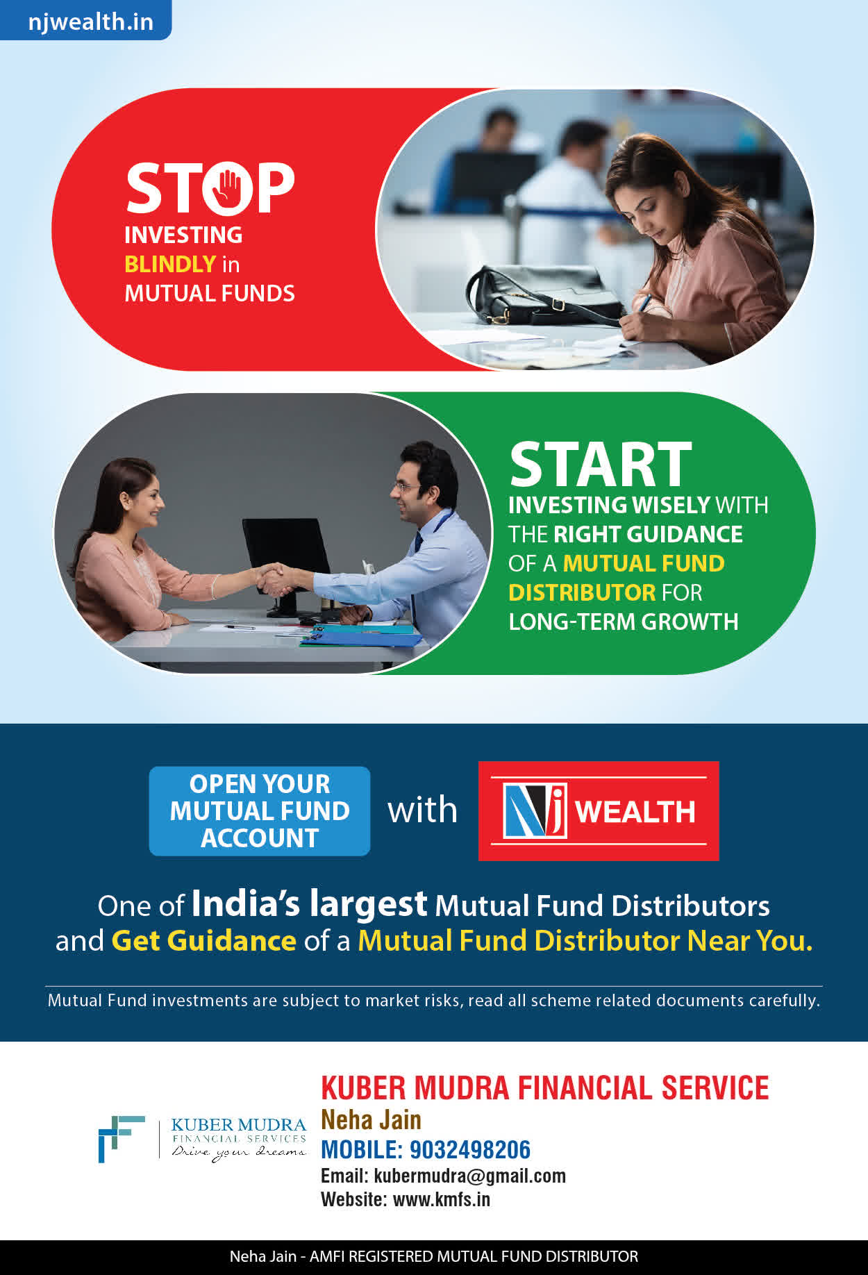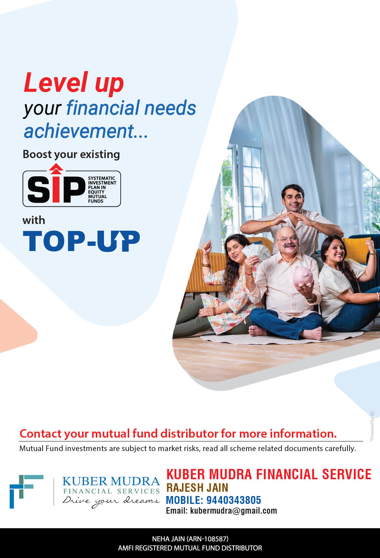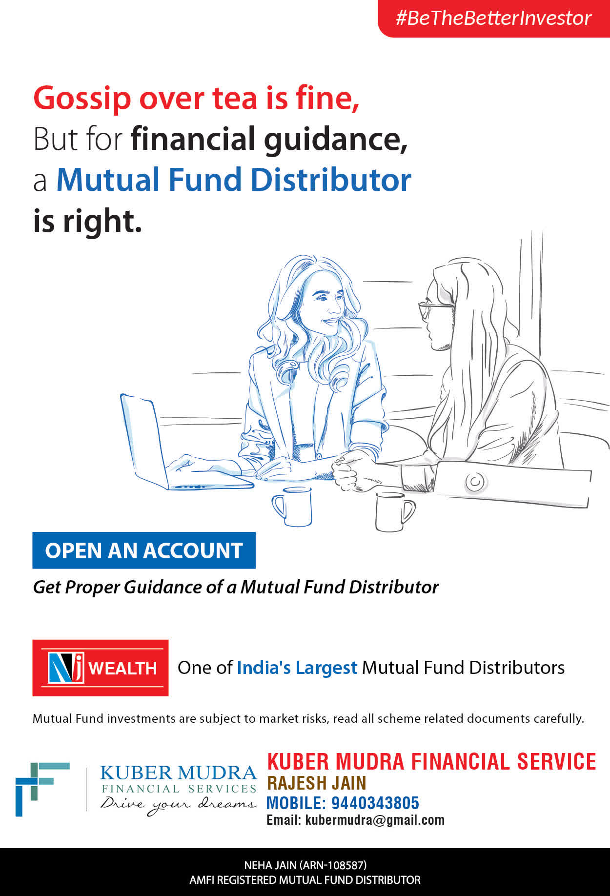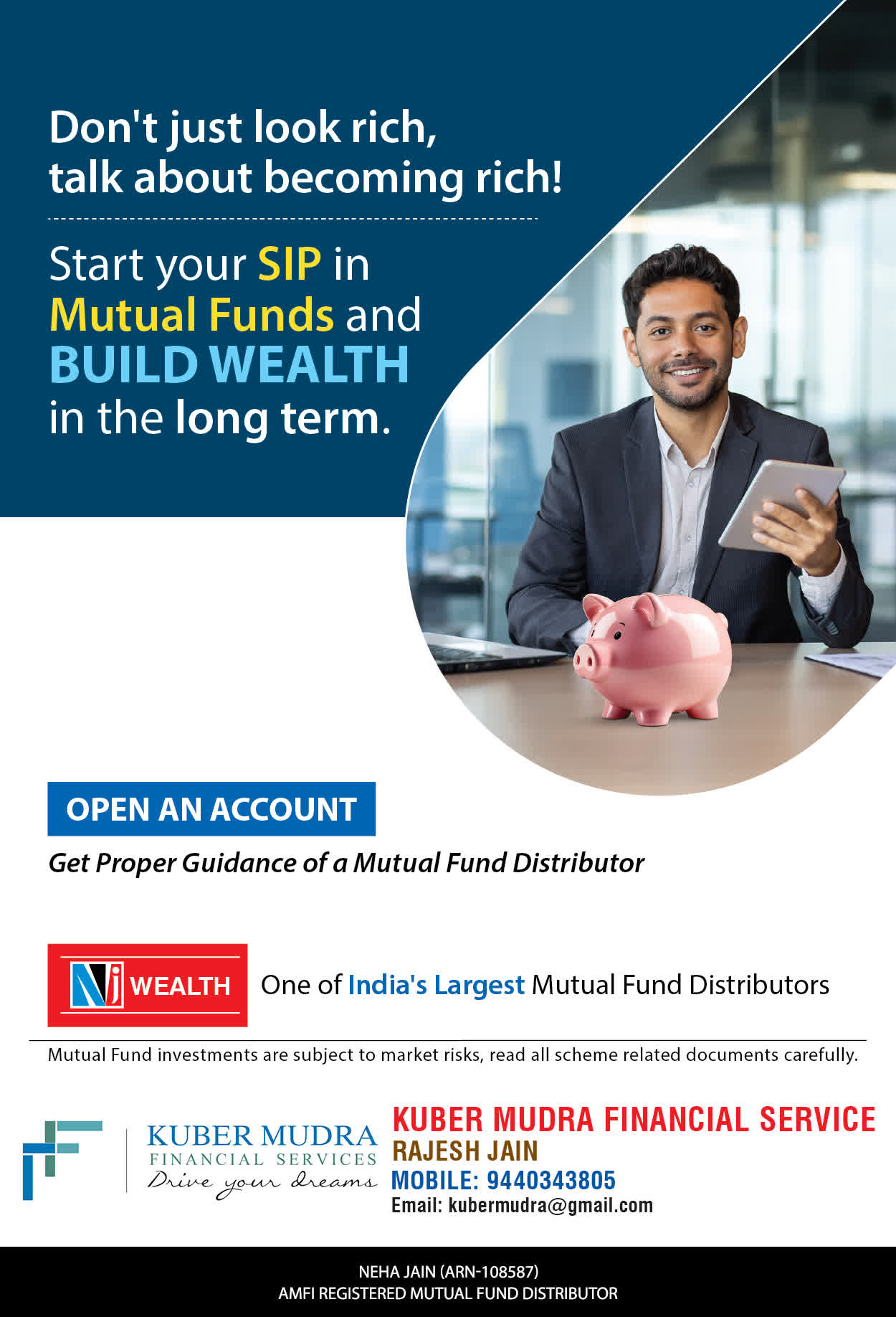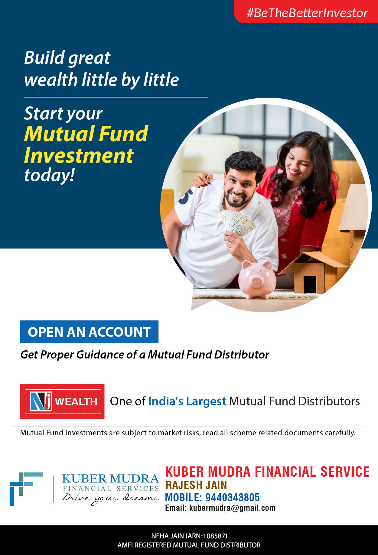 The Name KUBER MUDRA FINANCIAL SERVICES itself describes the very nature & goal we want to achieve for our Clients. Yes, our mission is to provide our clients with the best solutions in wealth creation and wealth management. We believe in first making our clients Financially literate. Earning after learning is the ultimate result. Our approach is to enable our client's to understand their investments, have knowledge of investment products and that they make proper progress towards achieving their financial goals in life.