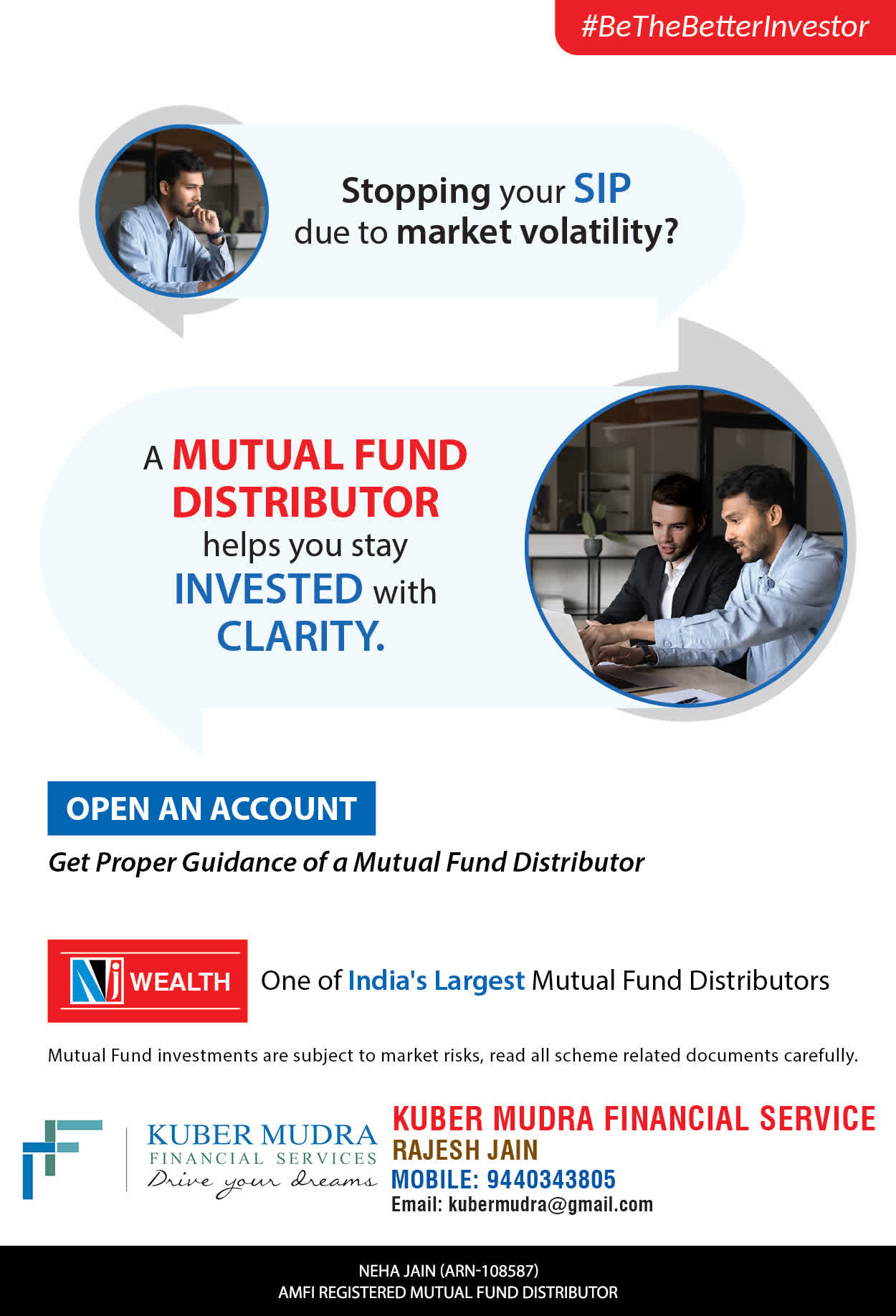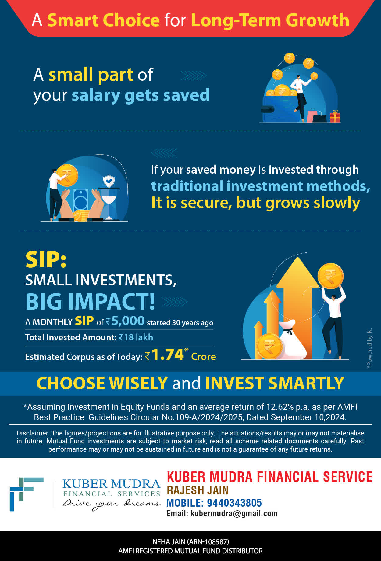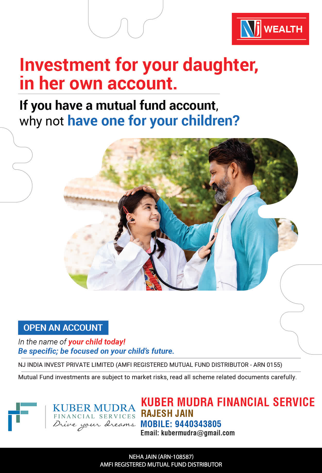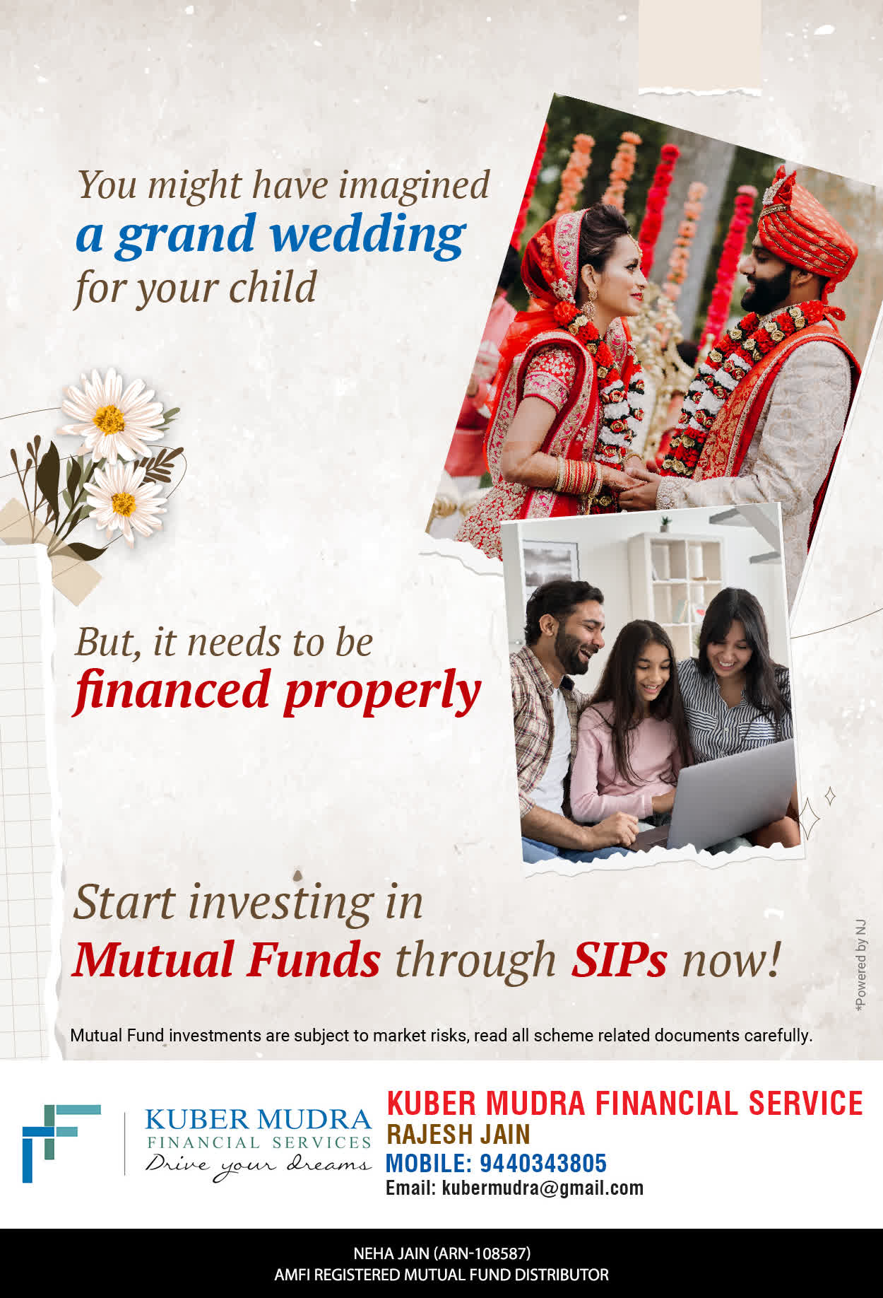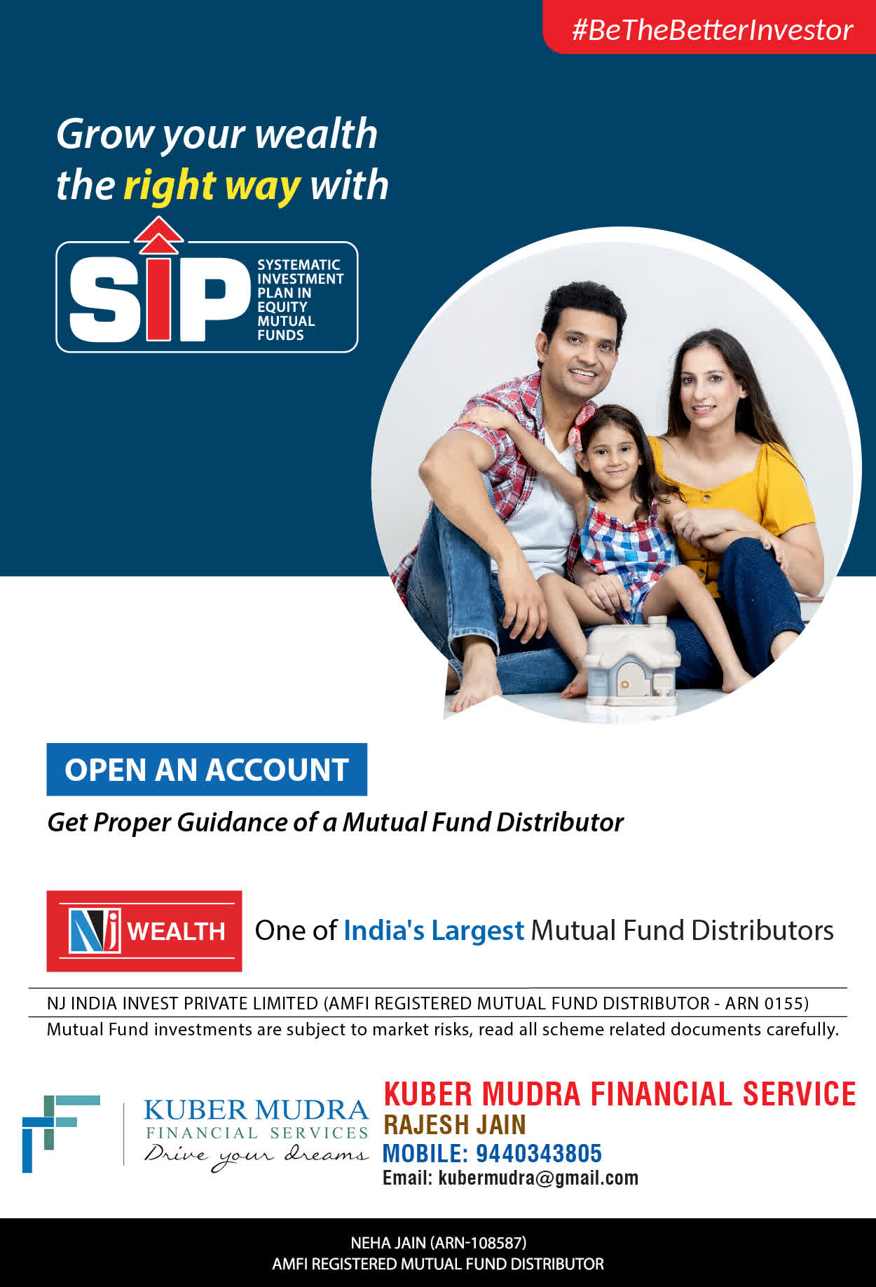 The Name KUBER MUDRA FINANCIAL SERVICES itself describes the very nature & goal we want to achieve for our Clients. Yes, our mission is to provide our clients with the best solutions in wealth creation and wealth management. We believe in first making our clients Financially literate. Earning after learning is the ultimate result. Our approach is to enable our client's to understand their investments, have knowledge of investment products and that they make proper progress towards achieving their financial goals in life.