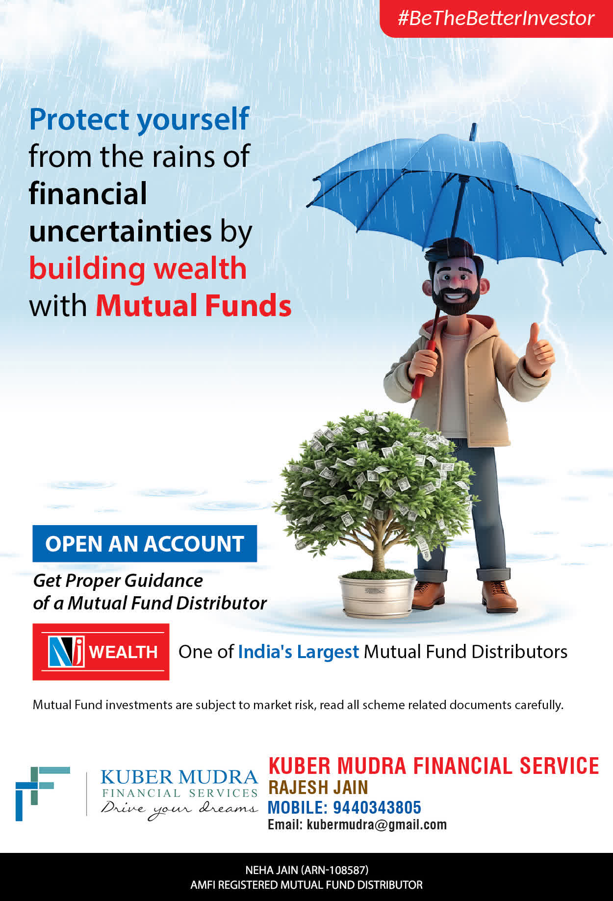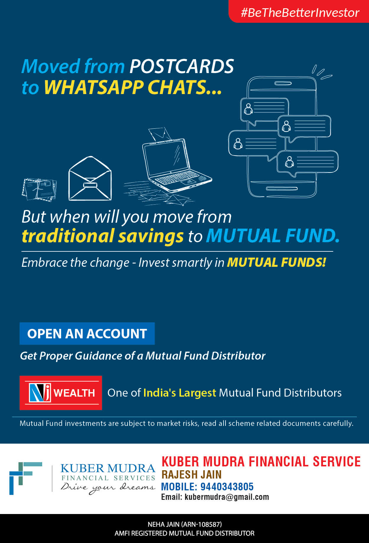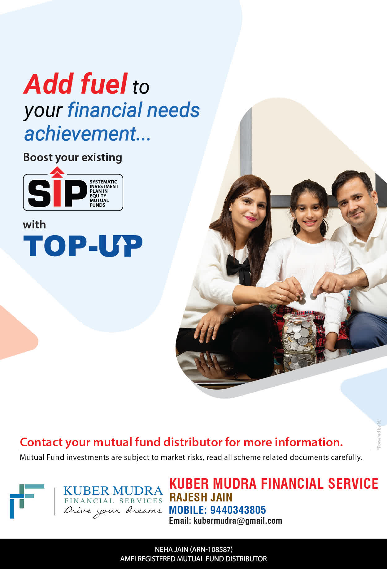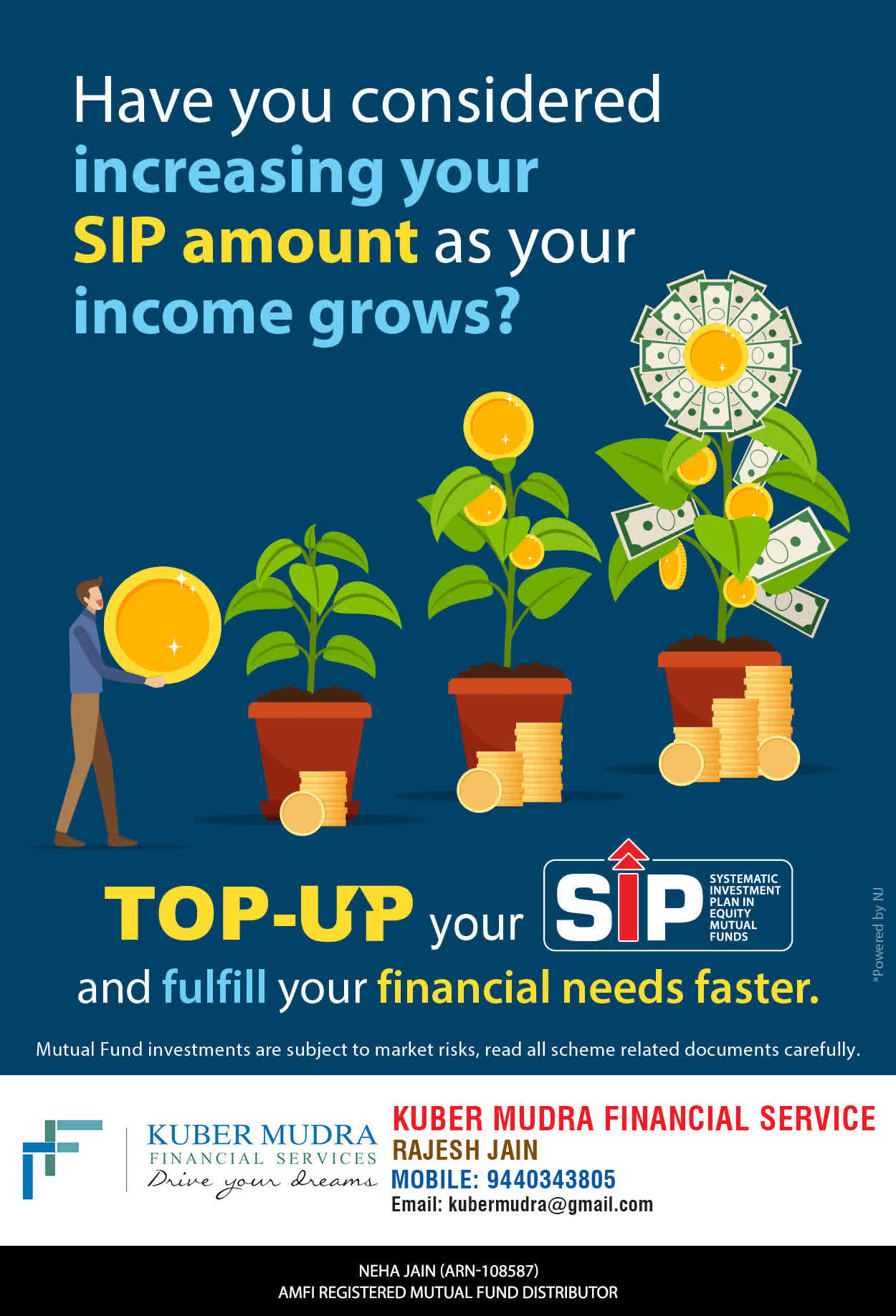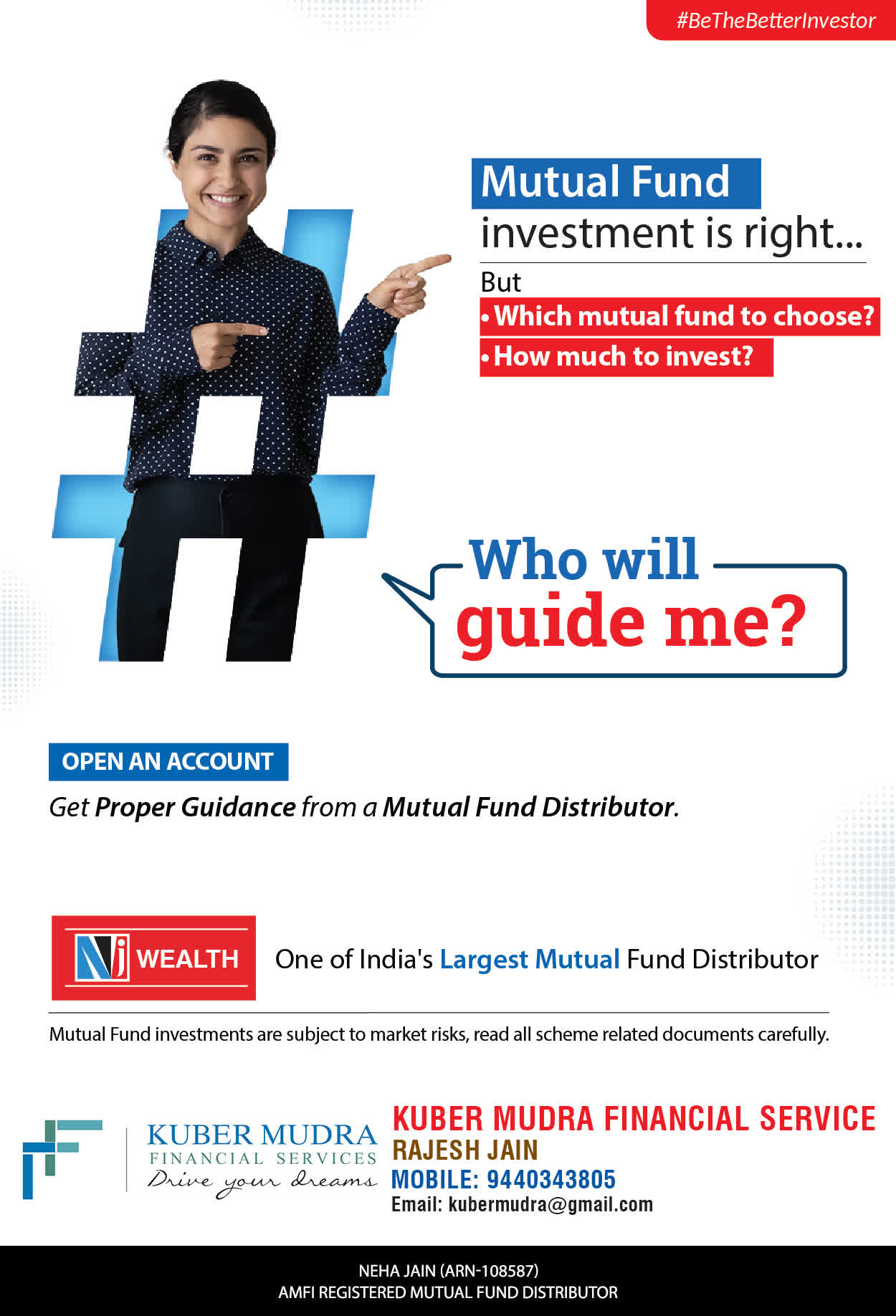 The Name KUBER MUDRA FINANCIAL SERVICES itself describes the very nature & goal we want to achieve for our Clients. Yes, our mission is to provide our clients with the best solutions in wealth creation and wealth management. We believe in first making our clients Financially literate. Earning after learning is the ultimate result. Our approach is to enable our client's to understand their investments, have knowledge of investment products and that they make proper progress towards achieving their financial goals in life.
