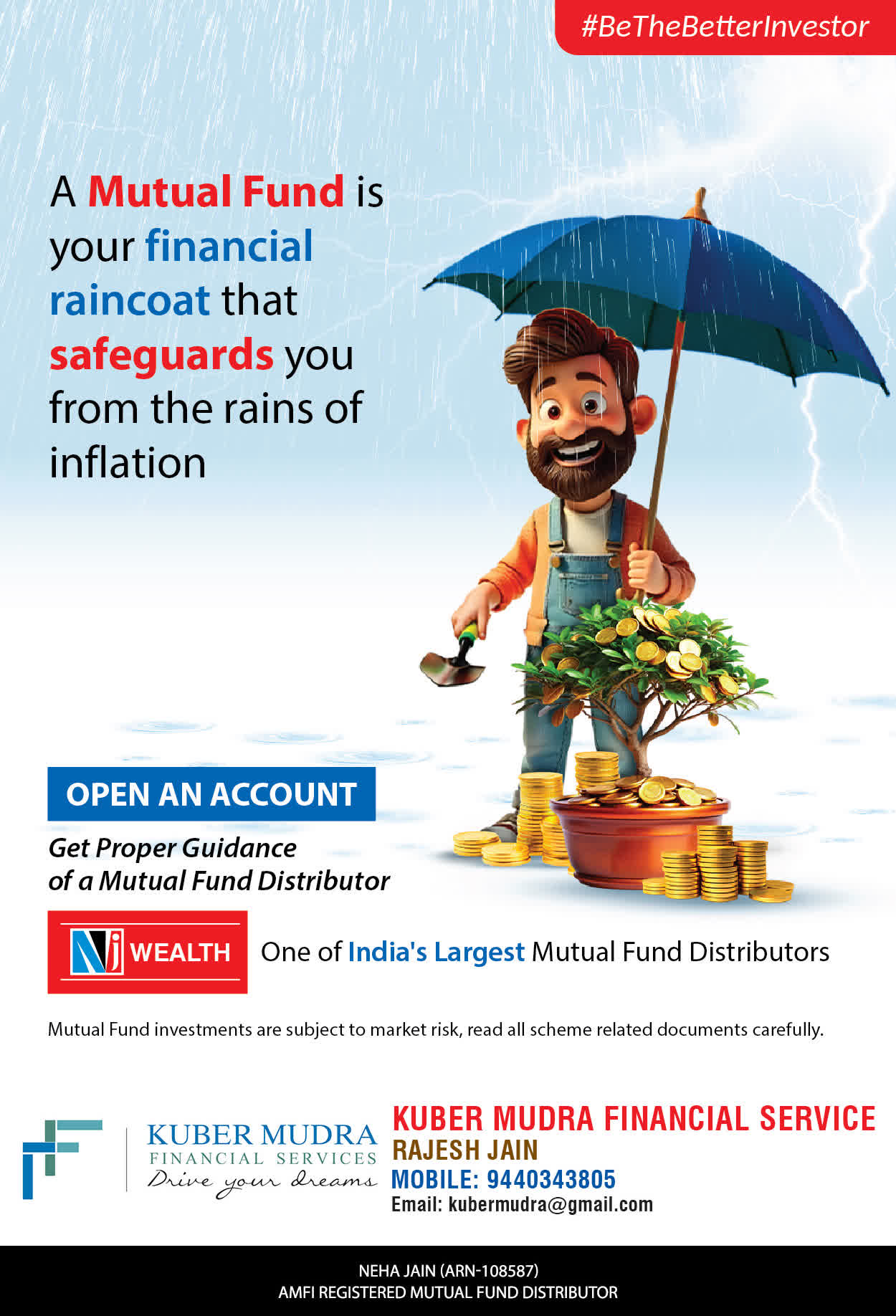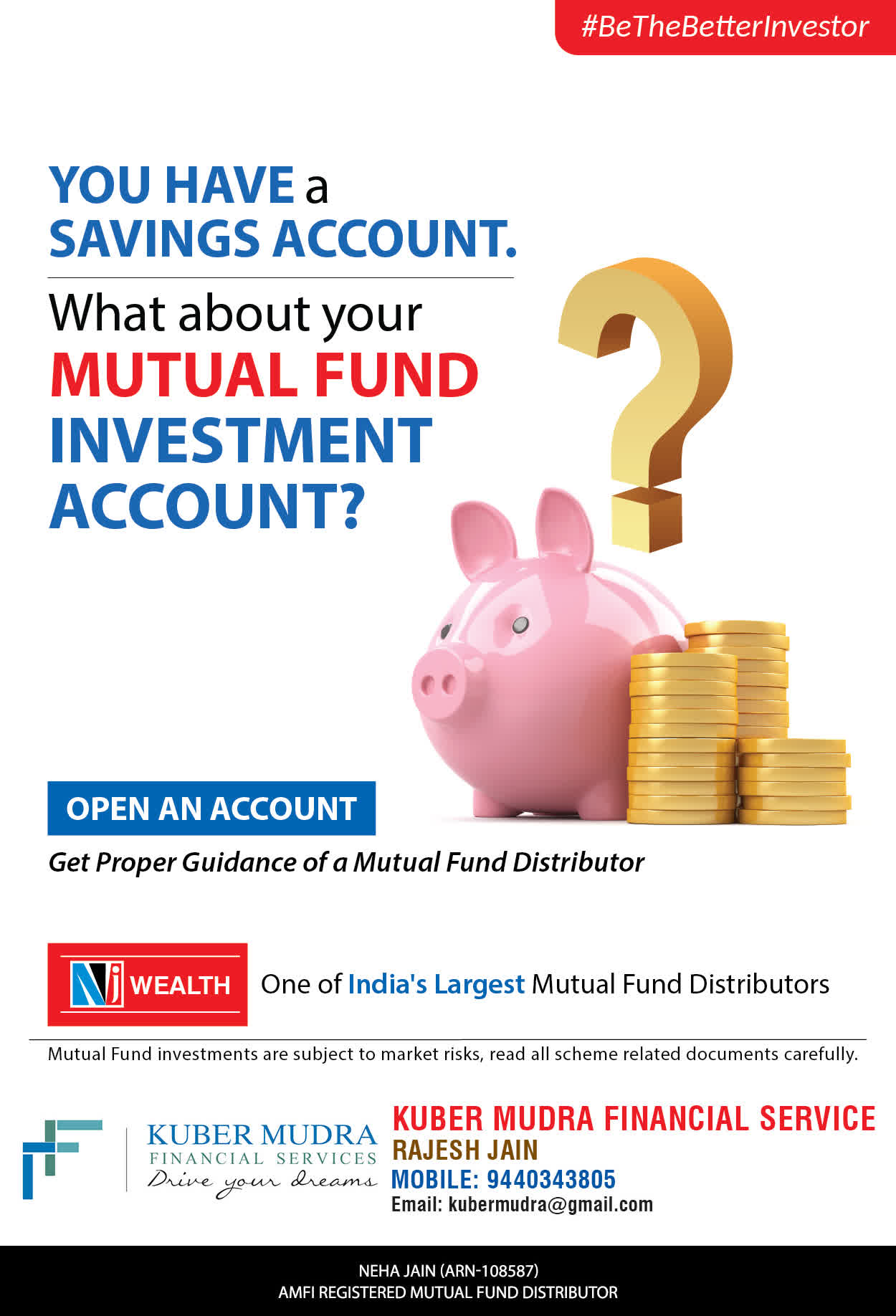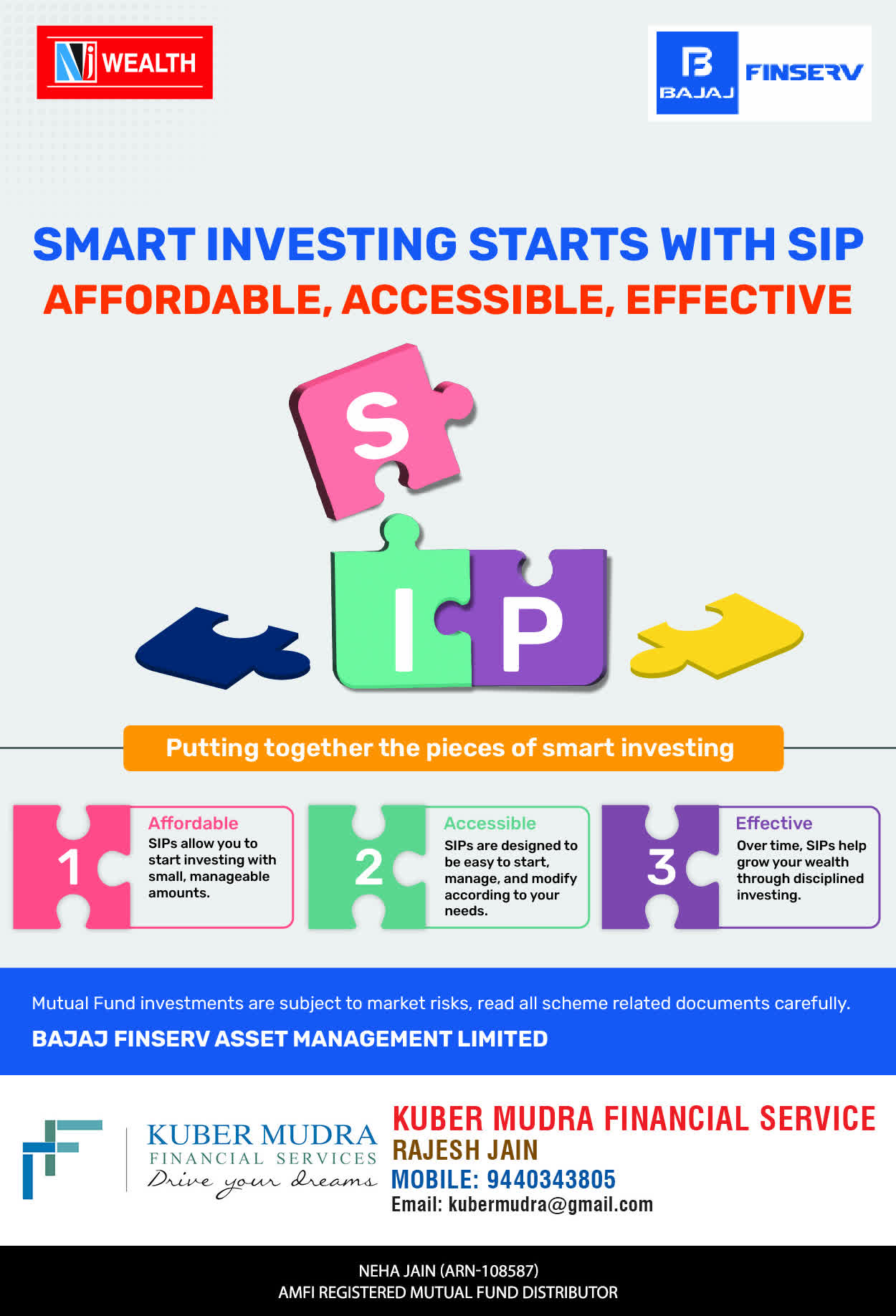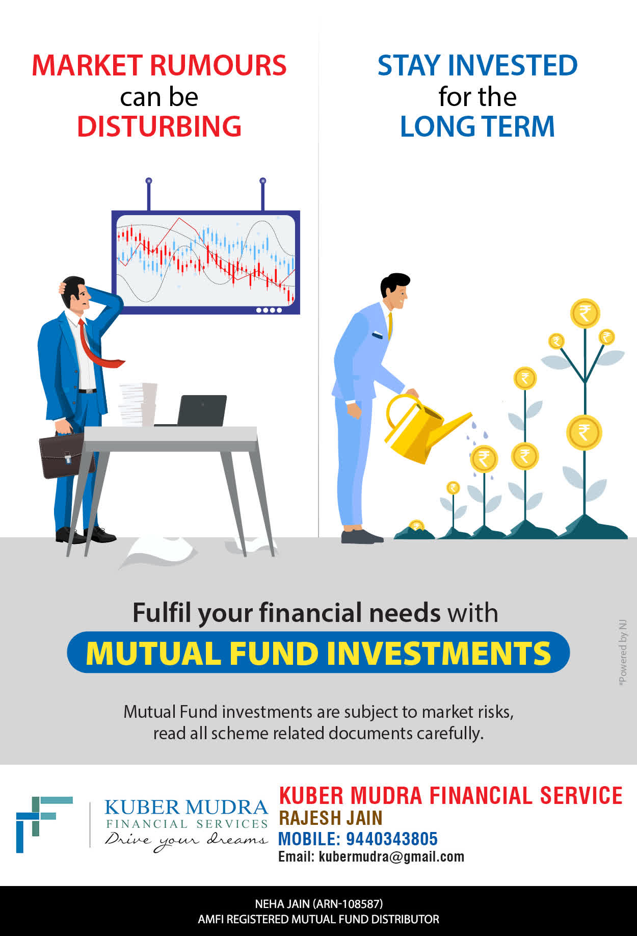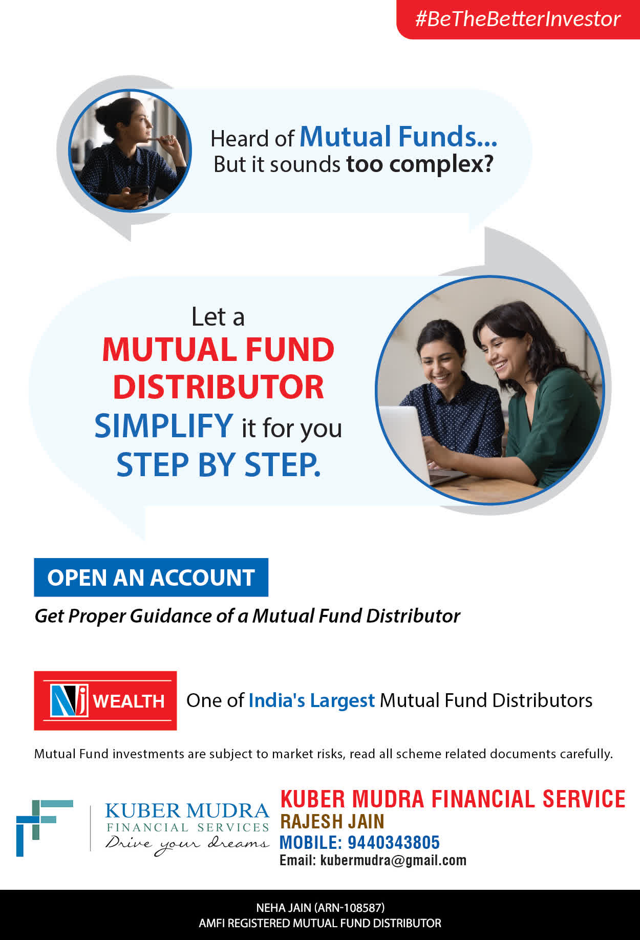 The Name KUBER MUDRA FINANCIAL SERVICES itself describes the very nature & goal we want to achieve for our Clients. Yes, our mission is to provide our clients with the best solutions in wealth creation and wealth management. We believe in first making our clients Financially literate. Earning after learning is the ultimate result. Our approach is to enable our client's to understand their investments, have knowledge of investment products and that they make proper progress towards achieving their financial goals in life.