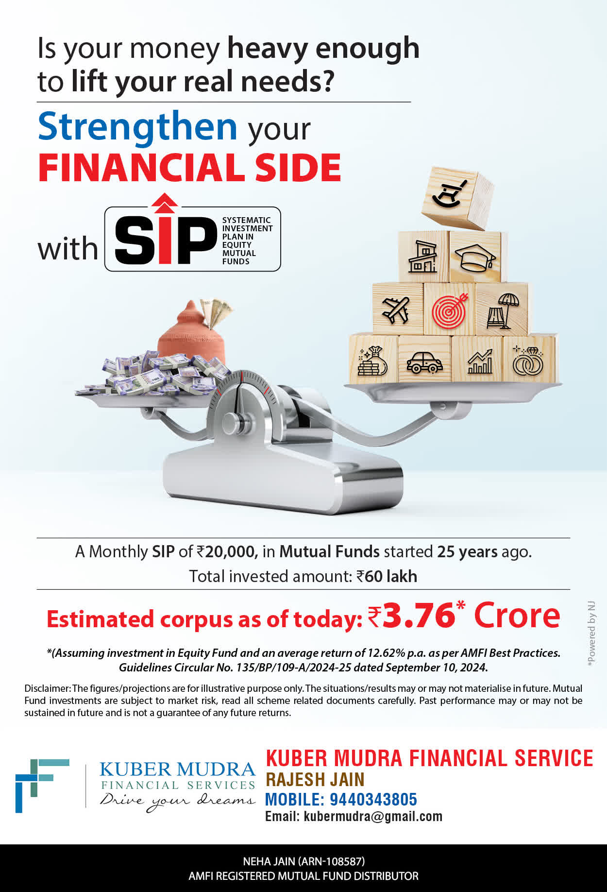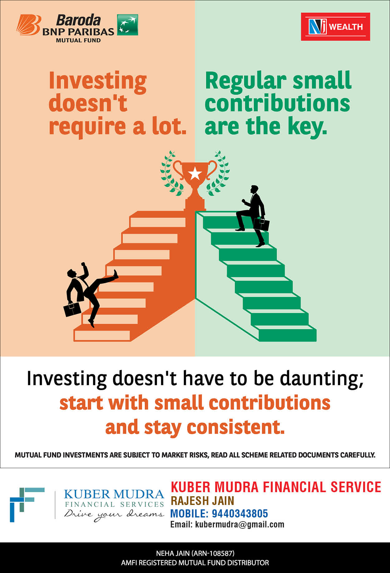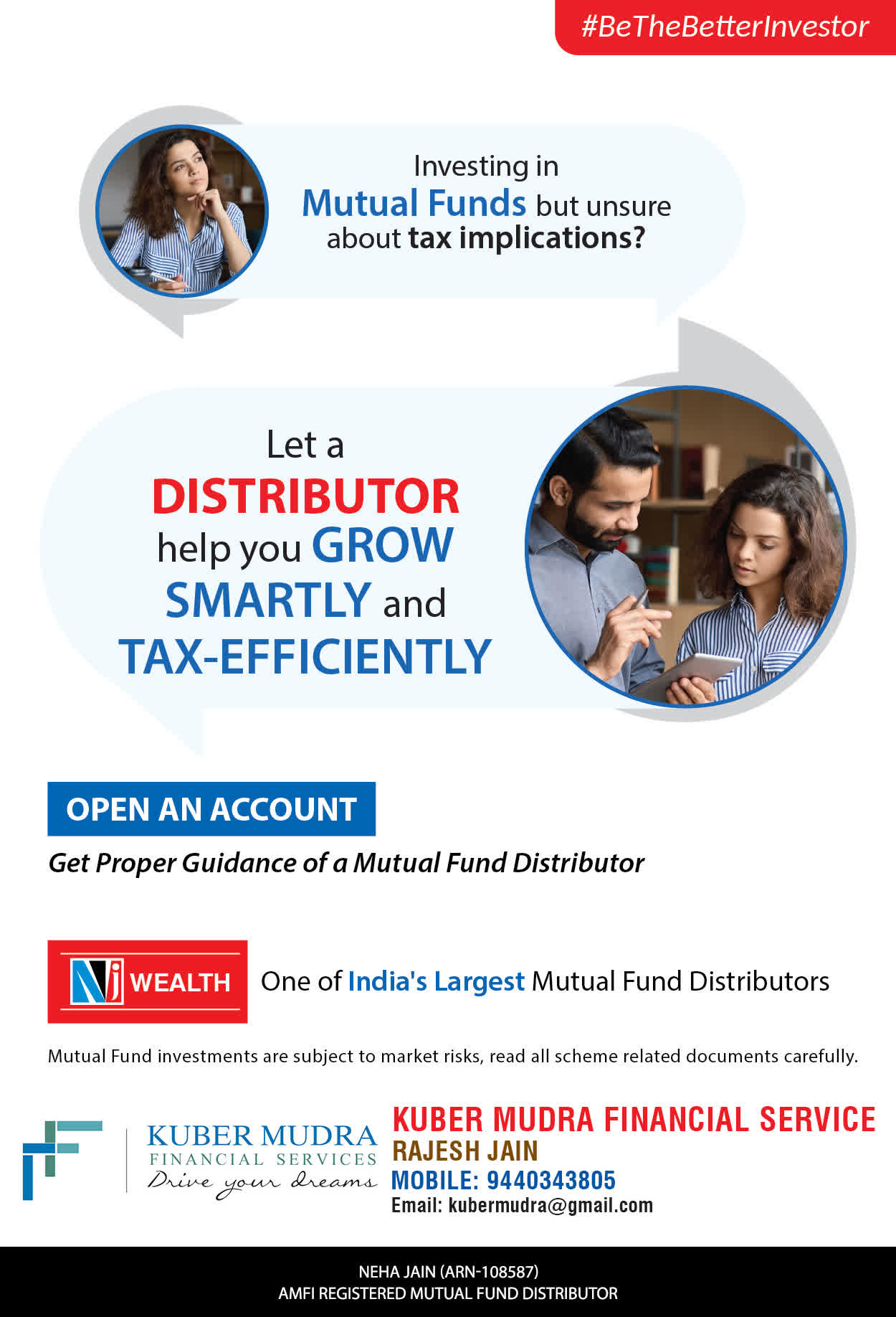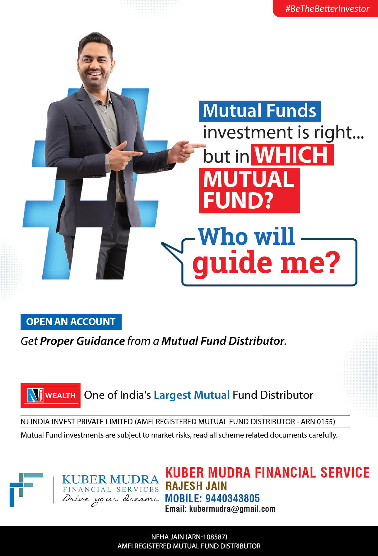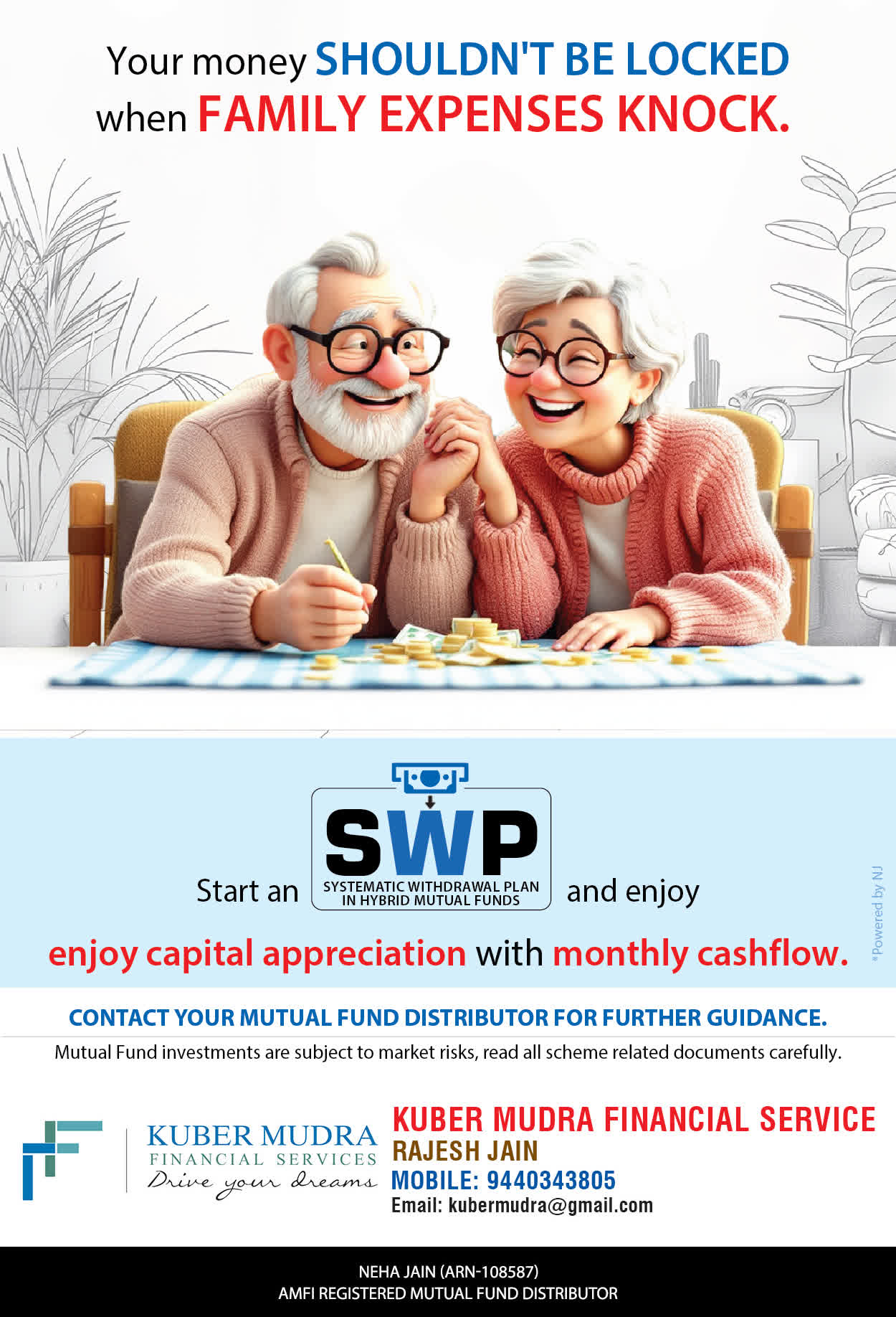 The Name KUBER MUDRA FINANCIAL SERVICES itself describes the very nature & goal we want to achieve for our Clients. Yes, our mission is to provide our clients with the best solutions in wealth creation and wealth management. We believe in first making our clients Financially literate. Earning after learning is the ultimate result. Our approach is to enable our client's to understand their investments, have knowledge of investment products and that they make proper progress towards achieving their financial goals in life.